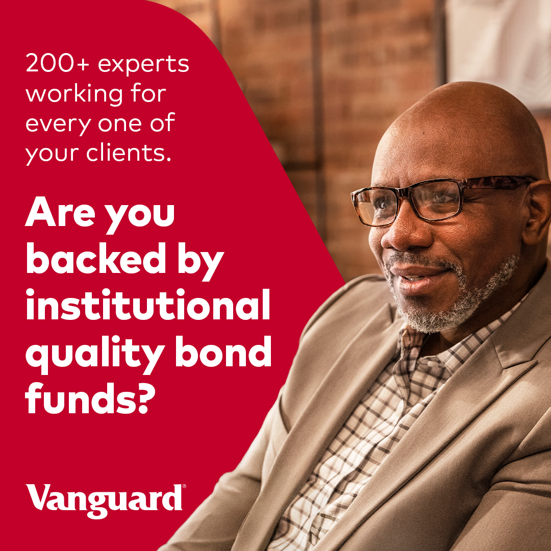 Advisors are always working to build portfolios that are rock-solid and secure. But they can get a real boost of confidence with Vanguard, because the institutional-grade quality of Vanguard fixed income brings serious power and stability that truly has their back.